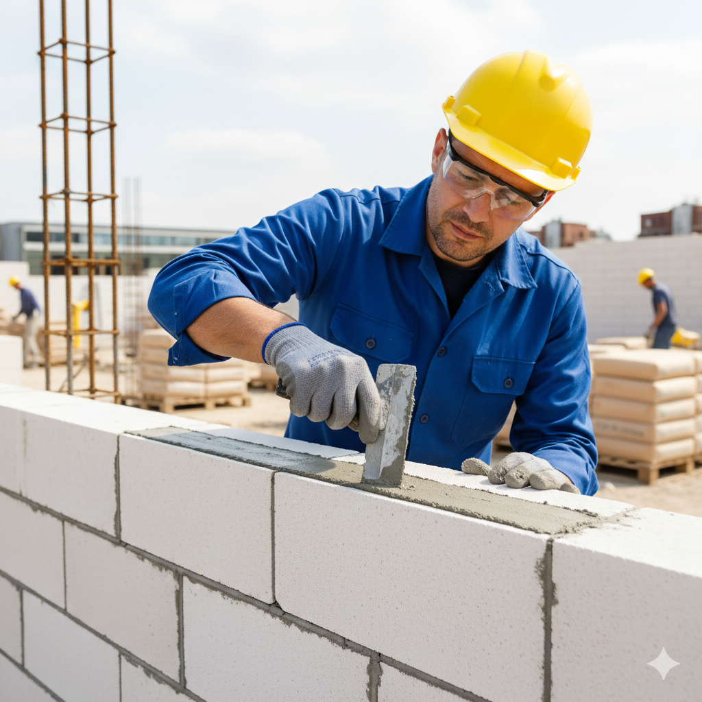 Unlike conventional masonry where mortar joints may be 10–12 mm or more, the jointing mortar for AAC blocks is designed to be applied in very thin layers (typically 2–5 mm) without compromising strength.